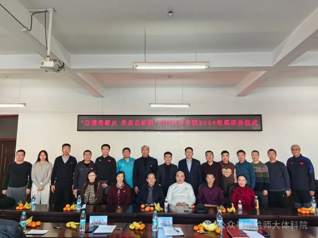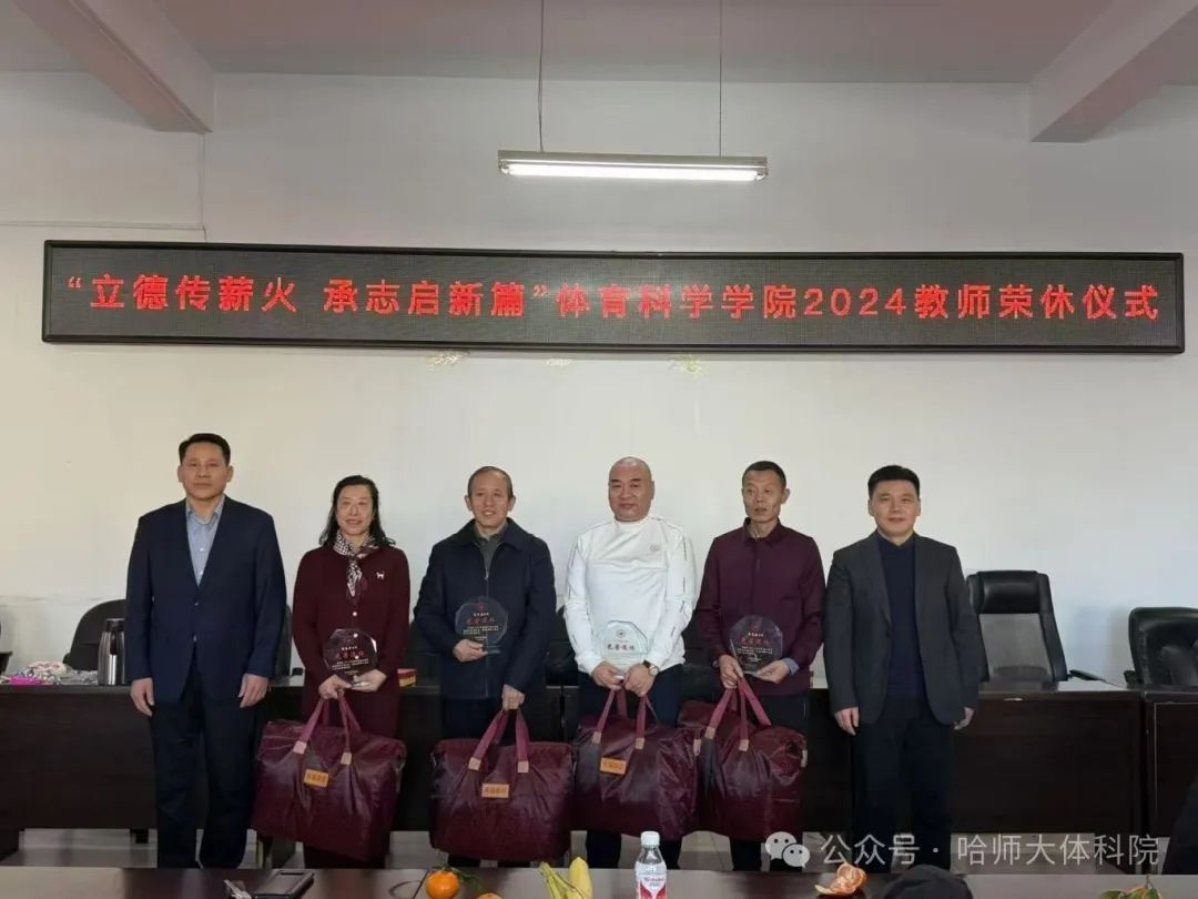 前行不忘躬耕者,桑榆未晚霞满天。为隆重感谢老教师为教育事业做出的贡献,为退休教师的教育生涯画上一个圆满的句号,增强广大教师的荣誉感和归属感,营造尊师重教的校园氛围。2024年12月6日,体育科学学院在体育楼401会议室举行了“立德传薪火,承志启新篇”体育科学学院2024教师荣休仪式。学院党政领导班子、三办一中心负责人、各教研部部长、党支部书记、正高职教师和师生代表参加了仪式,仪式由党委副书记、工会主席冯铁南主持。