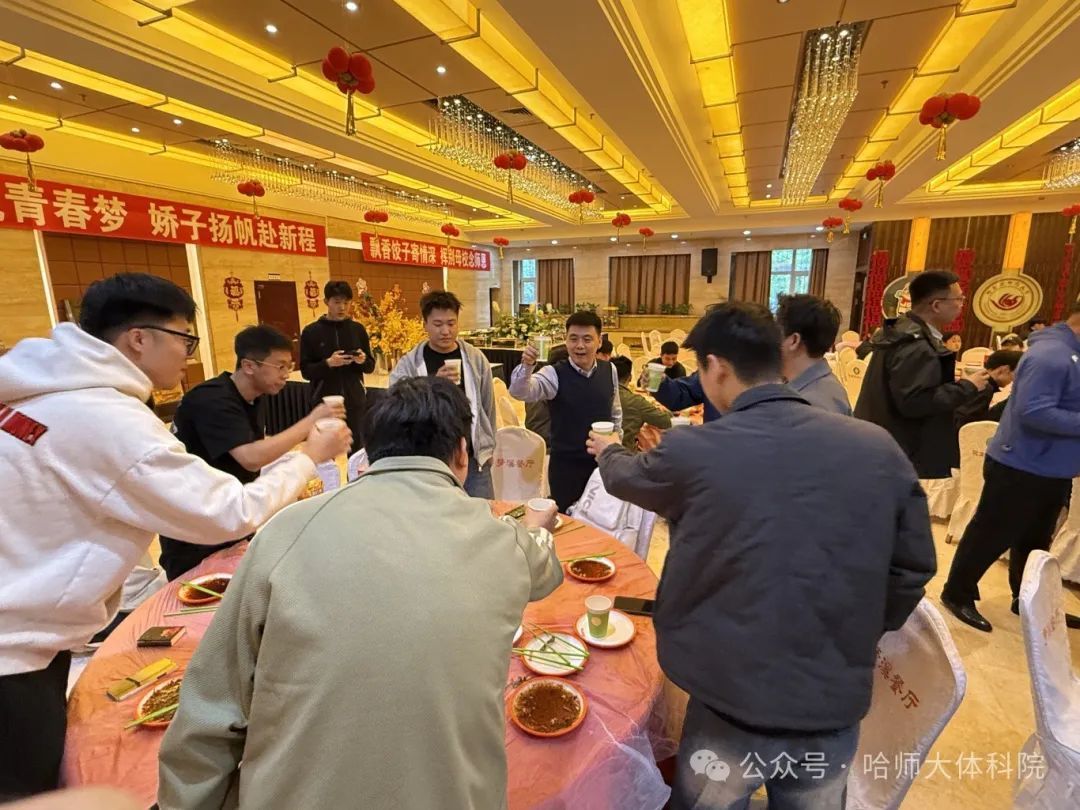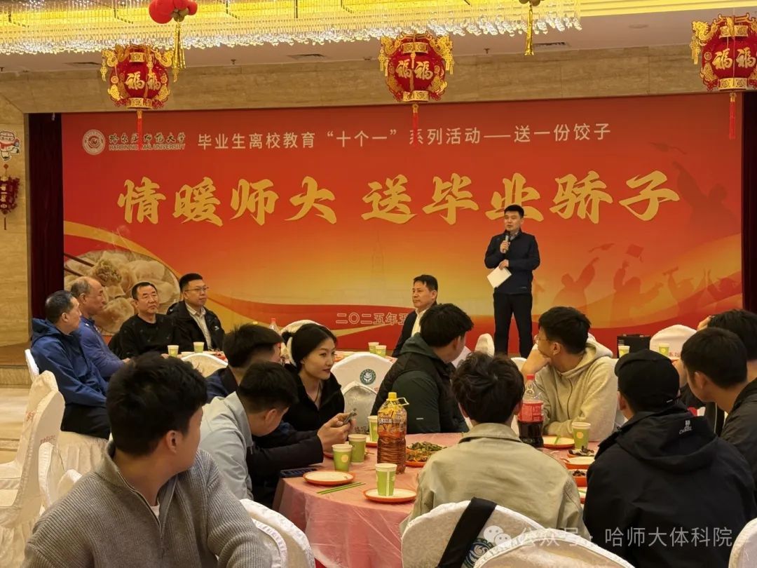 岁月不居,时节如流,转眼间又到了毕业季。为扎实推进我校毕业生离校教育“十个一” 工作,让毕业生们在离校前充分感受学院的温暖关怀,增进师生情谊。2025年5月17日,体育科学学院于梦溪宾馆一楼金色大厅举办“送一份饺子”活动。学院党委书记韩大伟、院长孙长良等领导班子成员,全体辅导员以及本硕2025届毕业生代表共同参与此次温馨聚会,活动由21级辅导员李朝旭主持。
