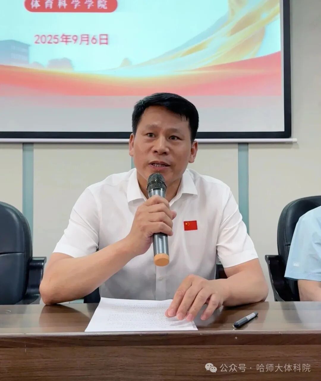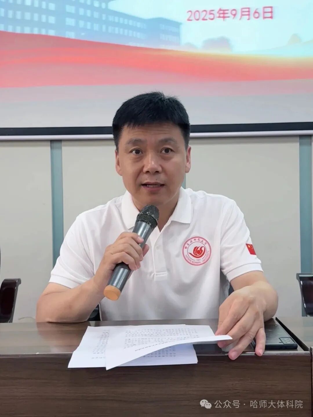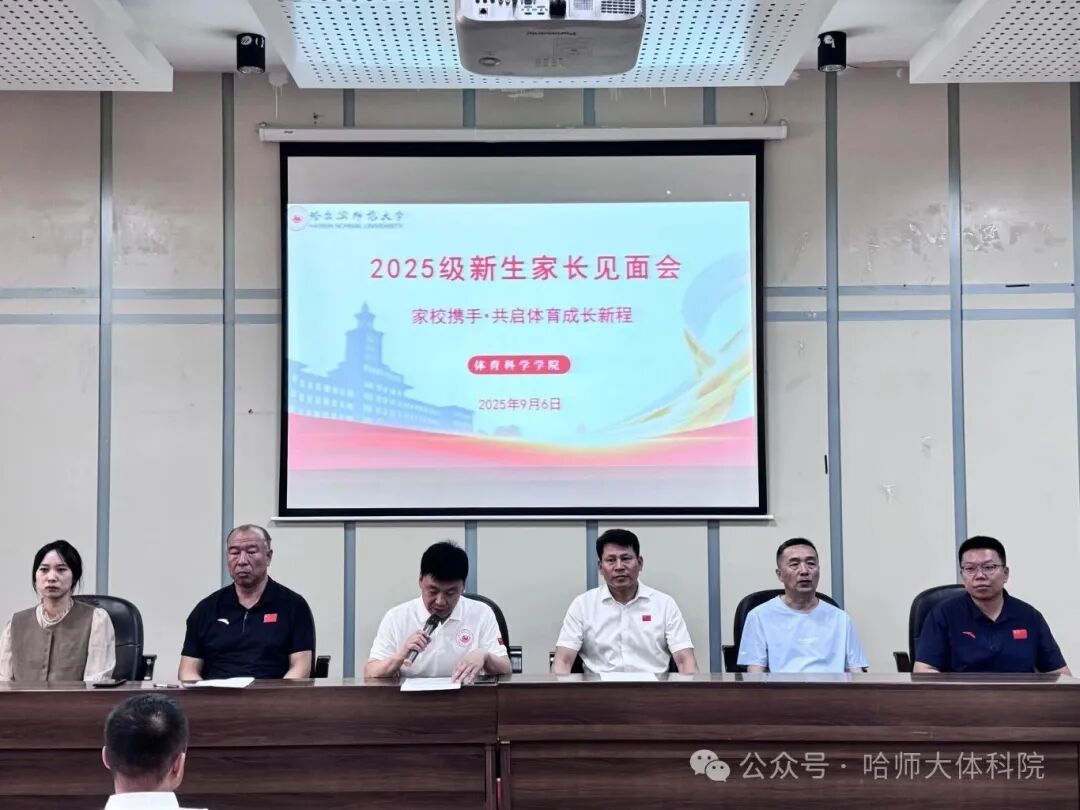 为进一步加强家校沟通,增进新生家长对学院的了解,凝聚家校育人合力,共同助力2025级新生更好地适应大学生活,9月6日中午11点,体育科学学院于新闻报告厅召开了2025级新生家长见面会。学院党委书记韩大伟、院长孙长良、党委副书记冯铁南、研究生辅导员任彦波、23级辅导员黄楚唯和25级新生辅导员李朝旭与众多新生家长齐聚一堂,共同开启与学院携手共育的新征程。