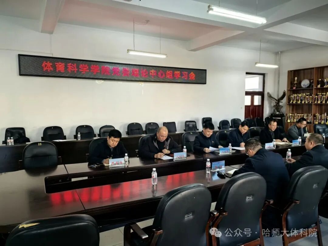 为弘扬伟大抗日精神,深入落实习近平总书记在纪念中国人民抗日战争暨世界反法西斯战争胜利80周年大会上的重要讲话精神,10月30日下午,体育科学学院党委理论学习中心组集体学习会在体育楼401会议室召开,学院党委理论学习中心组成员、第五互听组成员单位物理与电子工程学院党委书记邓铁男、生命科学与技术学院党委副书记高阳、化学化工学院党委副书记任伟、地理科学学院党委副书记代起君列席旁听会议。会议由学院党委书记韩大伟主持。