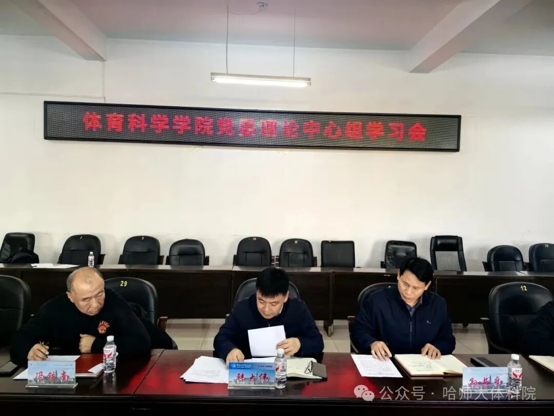 在交流研讨发言中,党委理论学习中心组成员韩大伟、孙长良、冯铁南结合自身学习和学院工作实际,对本次学习的习近平总书记重要讲话精神作了现场交流发言;崔松鹤、隋东旭和刘万鹏三位同志做出了书面交流发言。大家一致表示,将认真学习并深刻领会习近平总书记重要讲话精神,切实把习近平总书记重要讲话精神贯彻落实到体育科学学院的教学、科研、竞赛、管理和学生教育全员、全过程。