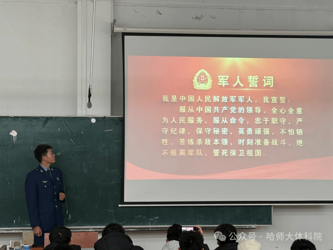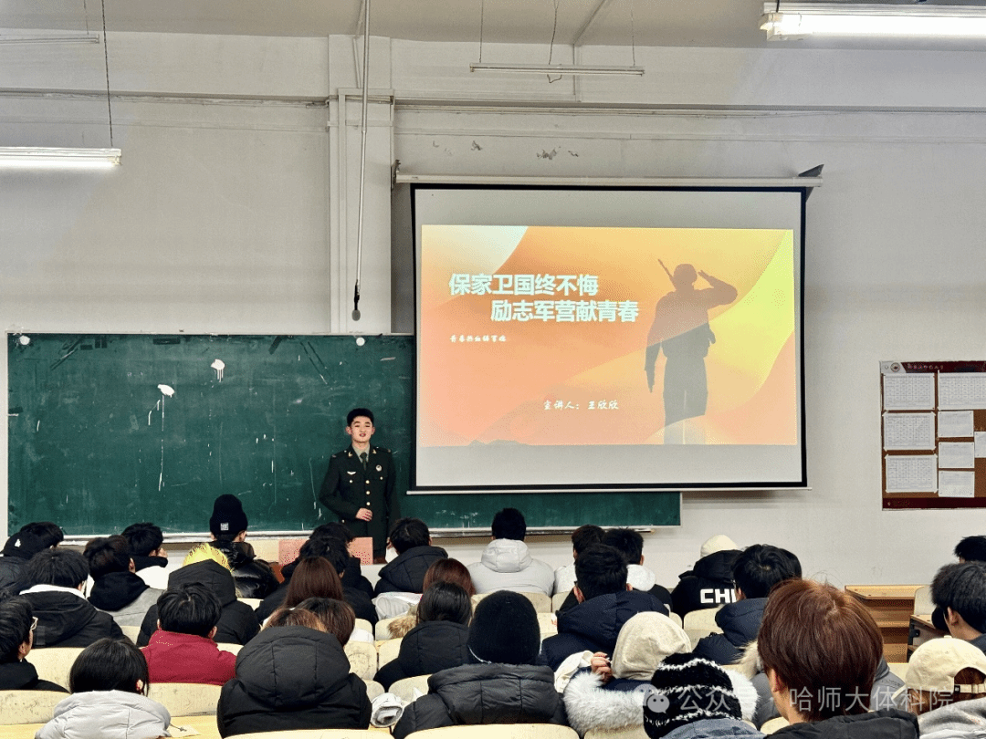 为厚植青年学生国防观念,激发参军入伍热情,引导学子将青春理想融入强国强军伟业,2025年12月4日,体育科学学院国防教育服务部以“保家卫国终不悔,励志军营献青春”为主题,在人文楼127举办国防教育宣讲活动。