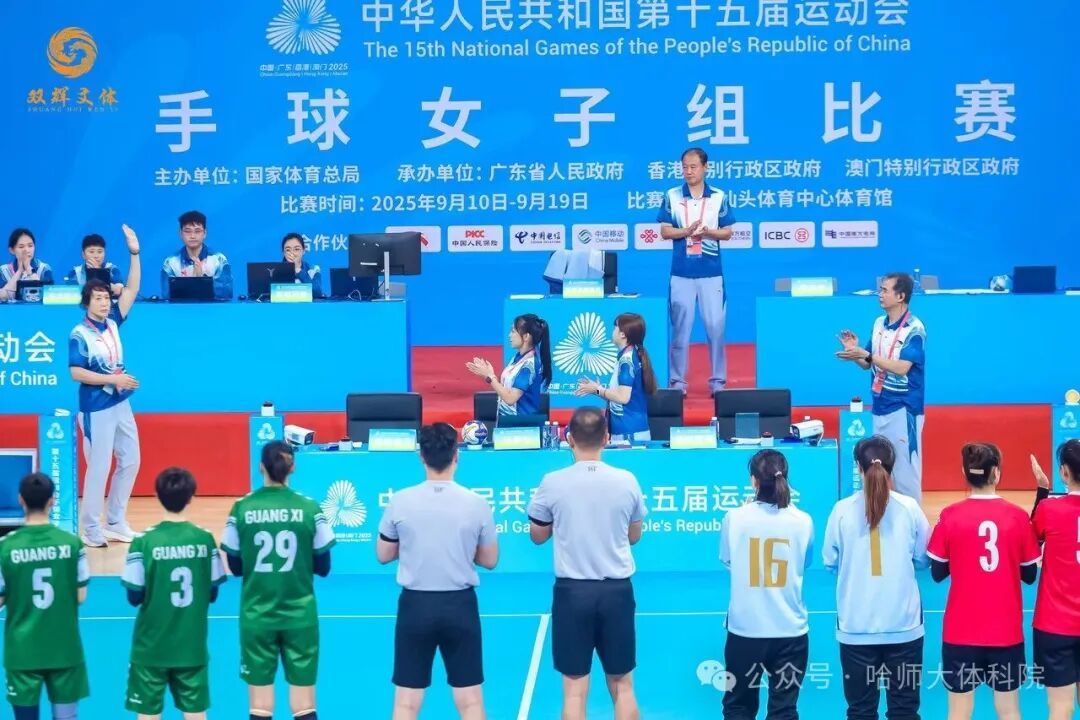 2025年9月6日,第十五届全国运动会女子手球比赛在广东汕头举行。作为本次比赛副裁判长,刘书勇老师始终以最高标准要求自己:以“严谨”为准绳,以“精心、细心”为服务理念,以手球竞赛规则为执裁依据,在工作岗位上实现了“零失误、零争议”的执裁目标,顺利完成第十五届全运会女子手球比赛任务。